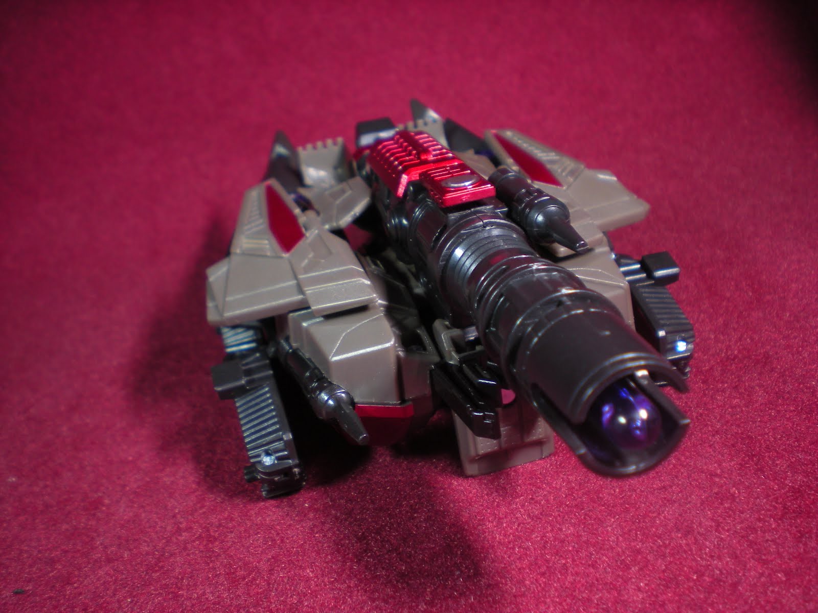 Like my previously reviewed Transformer, Megatron has 3 modes and I'll start with the 3rd uncommon mode. As well know of G1 Megs or Galvatron even, he transforms into gun or blaster and WfC Megs also got that, turning him into a sort of cannon mode, which is basically almost his alt mode without the wheels flipped out. It's a pretty menacing alt mode with Megatron's fusion cannon as the pipe where energy beams are shot, lots of spiky edges around while the alt mode looks kinda odd, you've got to remember it's a Cybertronian design, almost anything can look odd (remember those pyramid-like-shits the seekers transform into back in G1 when they were still at Cybertron? lolololol)