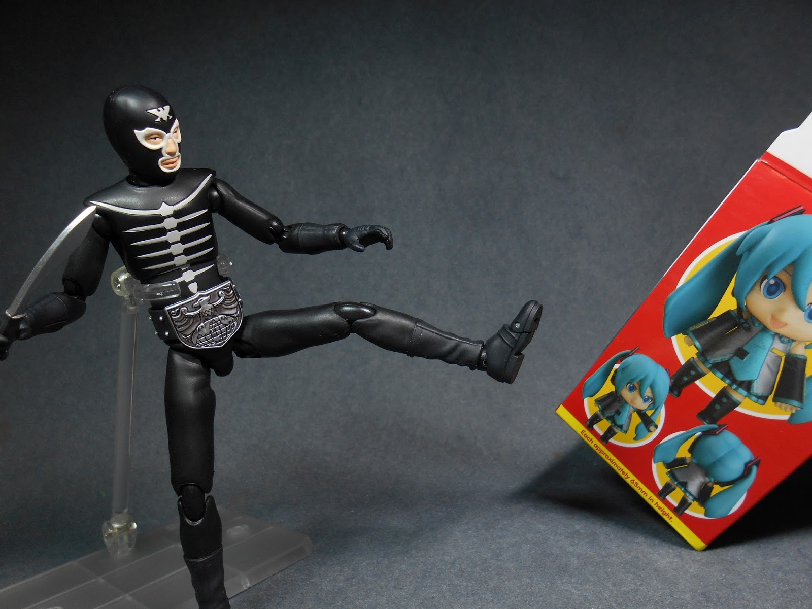 Your Shocker Combatman comes in really neat lanky mold of a man in tight black suit with a skeleton decoration on the body and a big ass buckle of a falcon on globe logo that is simply the Shocker organization's emblem. Aside from the white details and the big buckle, there's nothing much going on the Shocker mook as the rest is all black though, there are sculpted gloves and boots in there but barely even noticeable from afar. Lastly, the sculpted in face looks pretty neat as it does capture those Shocker mooks from the recent movies very well (and he looks like a pervert lol).